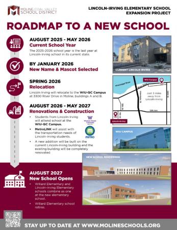 Educational programming will continue without disruption. The WIU-QC site will offer full K–5 instruction, including Lincoln-Irving's dual-language program, specialty education services and enrichment opportunities such as art, music, physical education, extracurricular activities and student clubs.